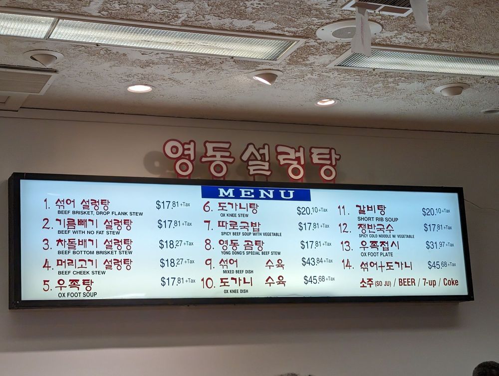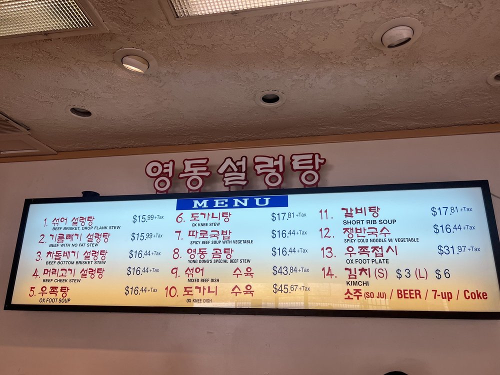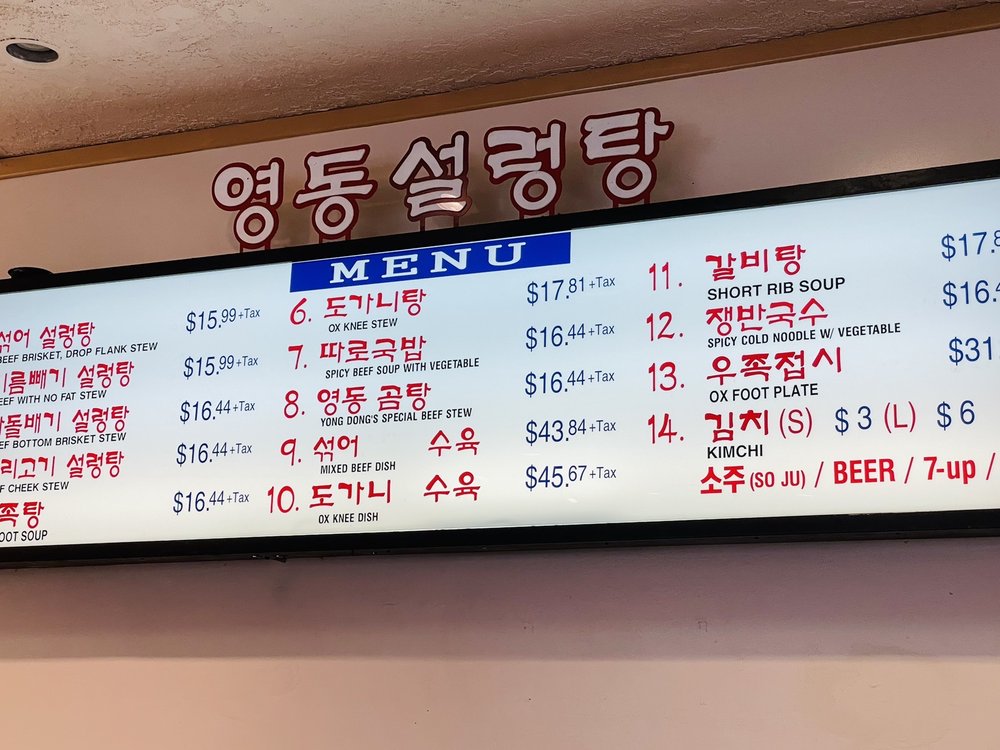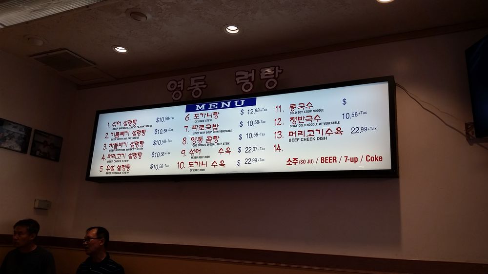 Young Dong Restaurant, located in Los Angeles, offers a variety of beef stew and soup dishes with generous portions of meat. Known for their clear broth soups, customers rave about the flavorful beef stock and tender cuts of beef. The menu boasts specialties such as Beef Brisket Drop Flank Stew, OX Knee Stew, and Cold Soy Stew Noodle. With options for customization like adjusting saltiness and adding green onions, the dining experience at Young Dong is not only delicious but also satisfying. The casual atmosphere, quick service, and ample parking add to the overall dining experience. As a food reviewer, I highly recommend trying the authentic Sul Lung Tang (ox bone soup) and pairing it with their delicious kimchi for a complete and comforting meal. Young Dong's dedication to quality and taste truly sets them apart in the Korean food scene.